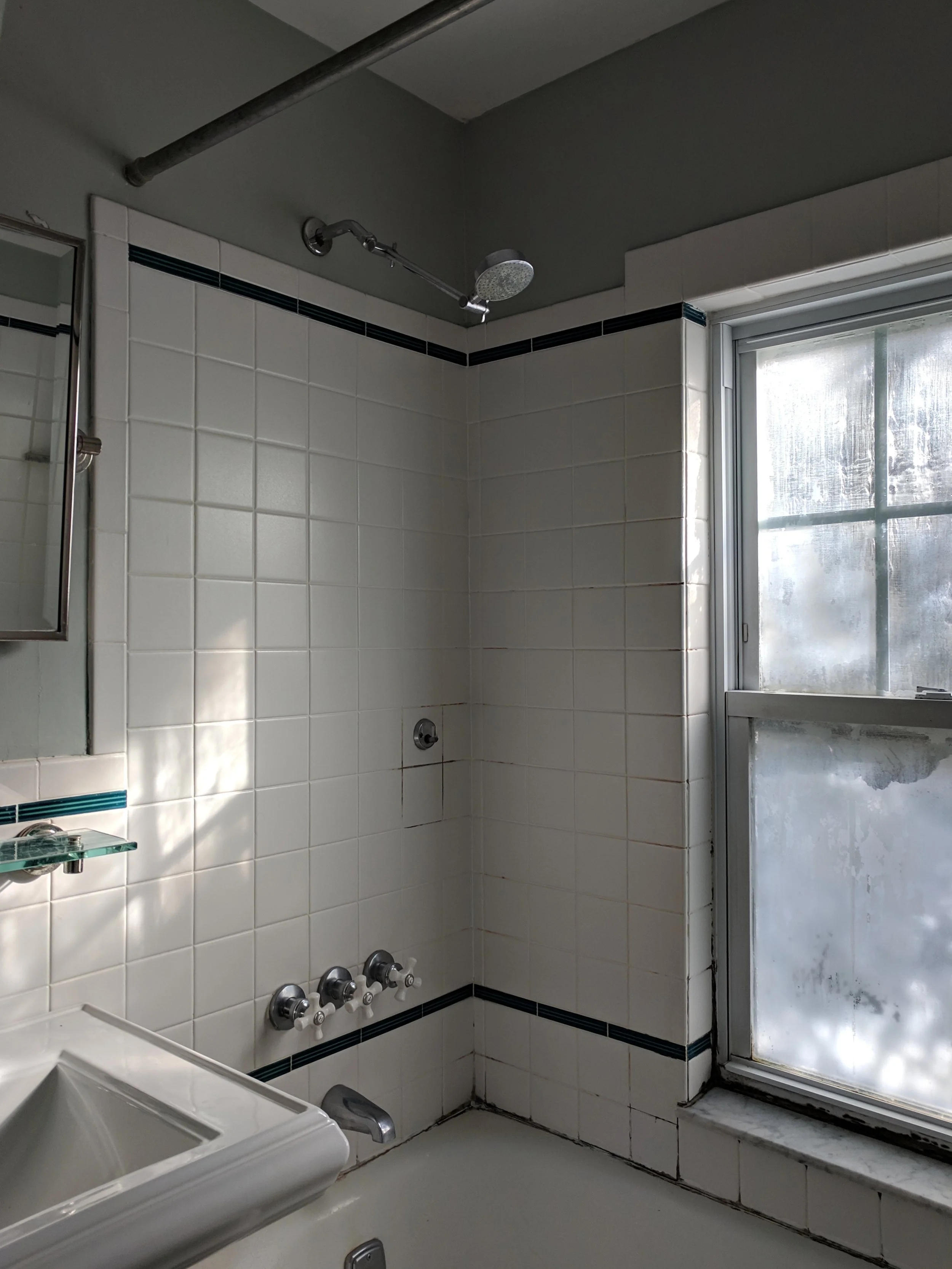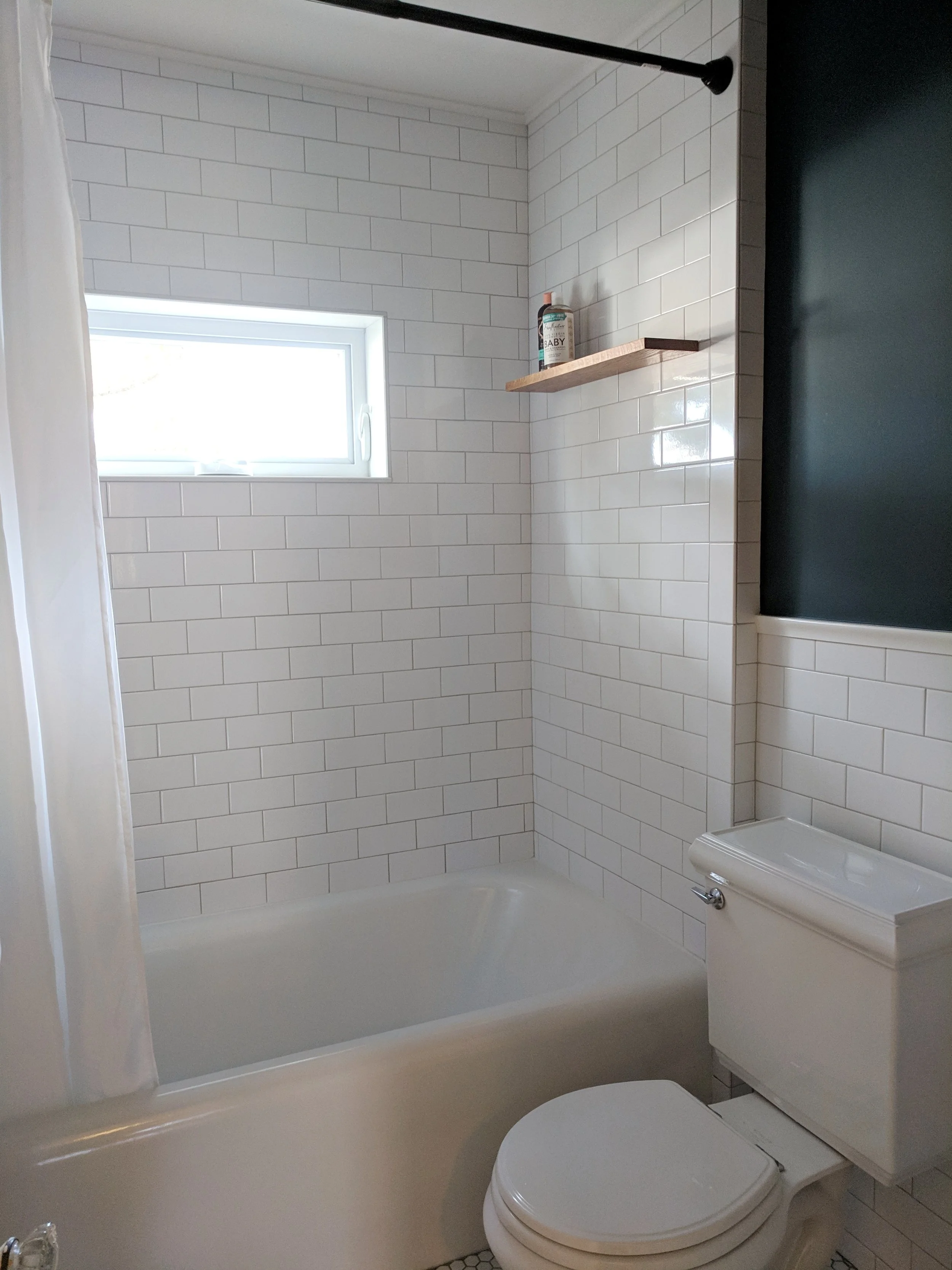 The initial goal of this renovation was to repair the shower wall that had severe water damage from a full sized, window. In an effort to prevent future water damage, we reduced the size of the window and used a small, vinyl replacement.