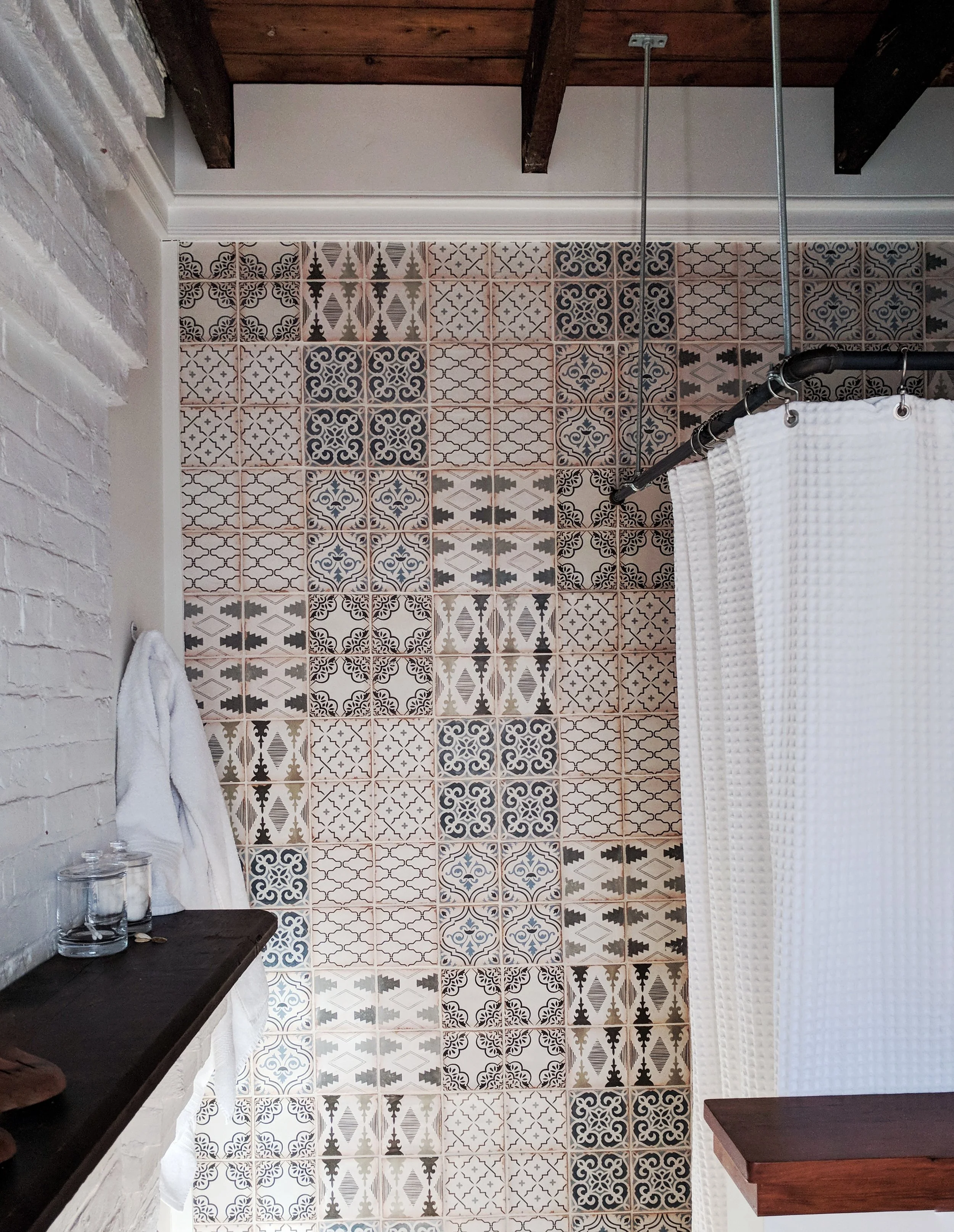 Maintaining the original black exposed ceiling beams