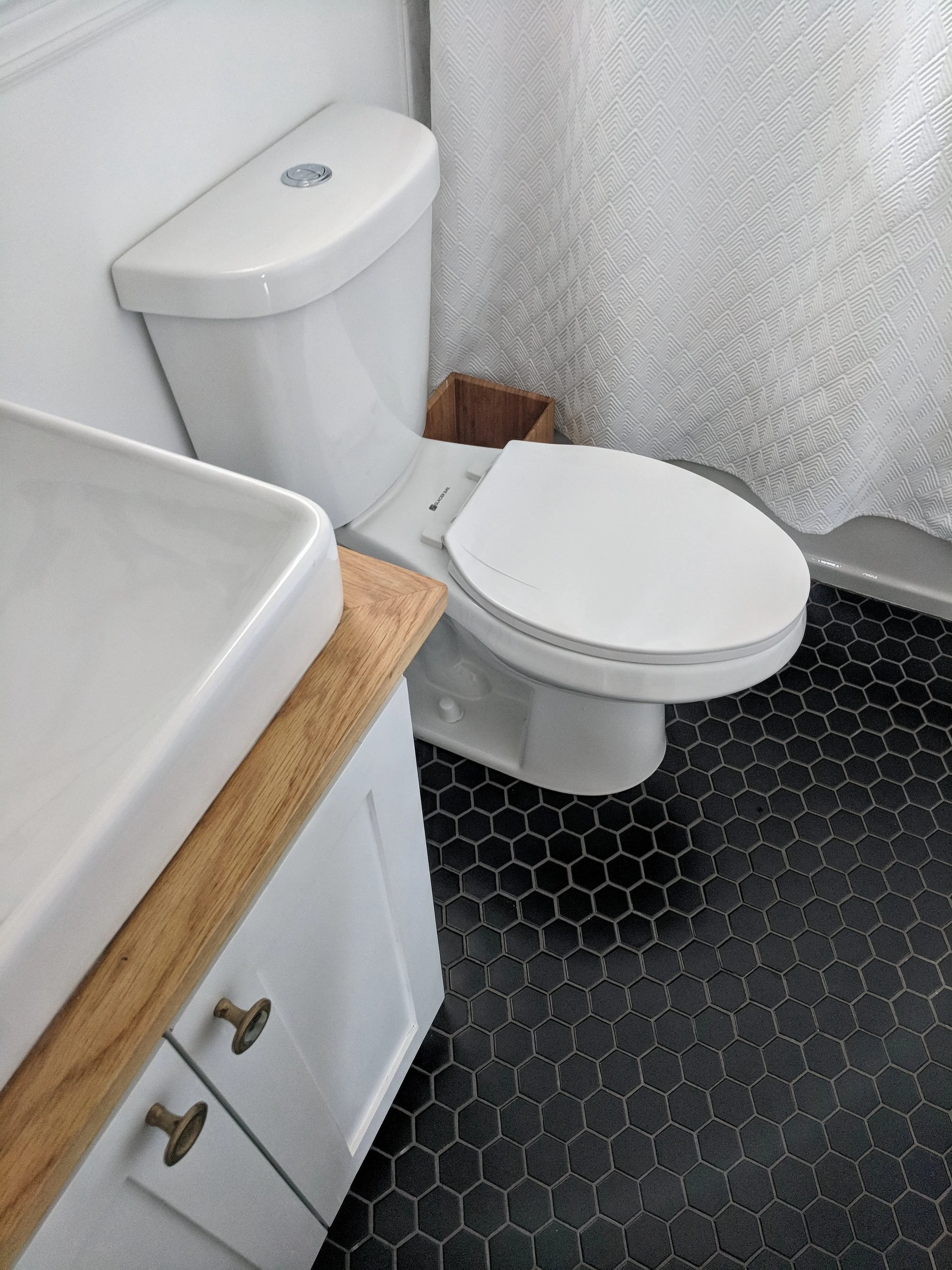 As the center of this home's floorplan, the goal was to make the first floor bathroom consistent with the style and charm of the rest of the house. None of the major fixtures or plumbing were moved, we simply madeover the space with new architectural details and modern accents.
